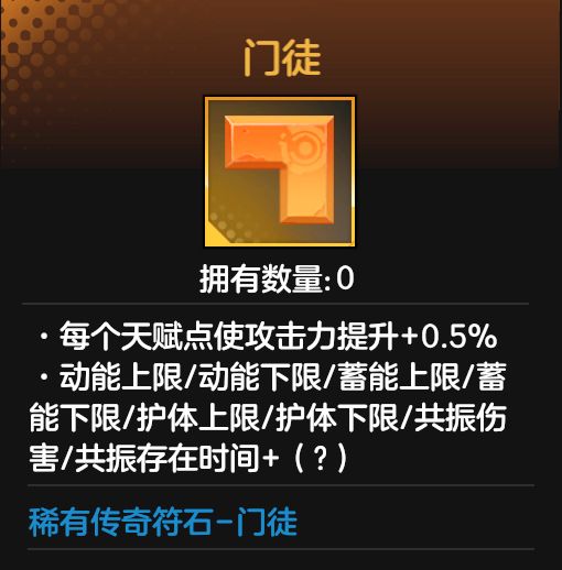 装备该符石,冒险者在异界中每获得1个天赋点,都能提高一定的攻击力;该符石还能为四种战斗特性带来变化,比如一定概率提升「共振」伤害,能够提升携带「冲击波」词条的技能伤害。