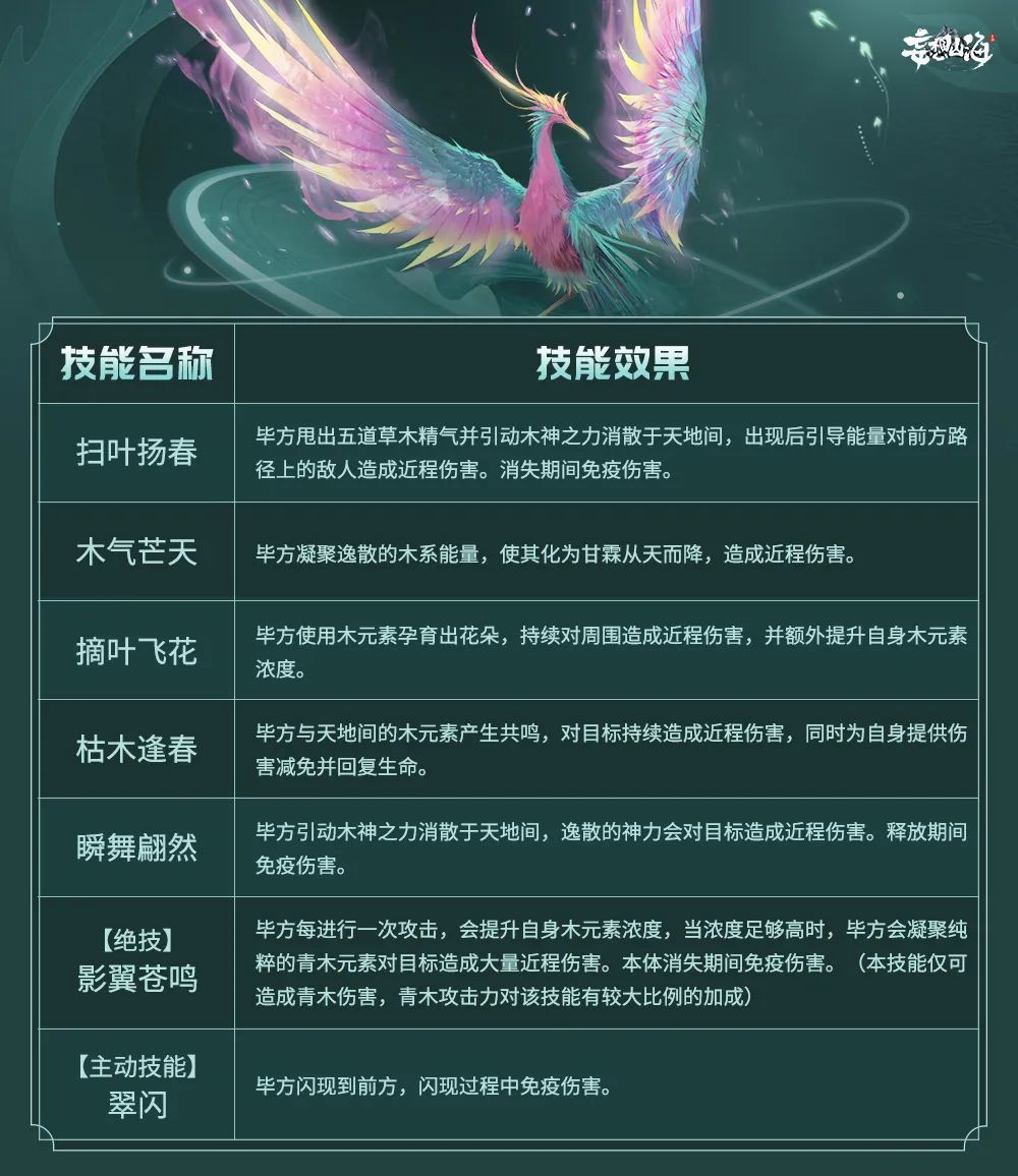 作为山海世界第一只具有元素伤害的进化宠,毕方的实力自然不弱,虽然毕方的资质以攻击见长,但是它的技能可不止是伤害高哦!