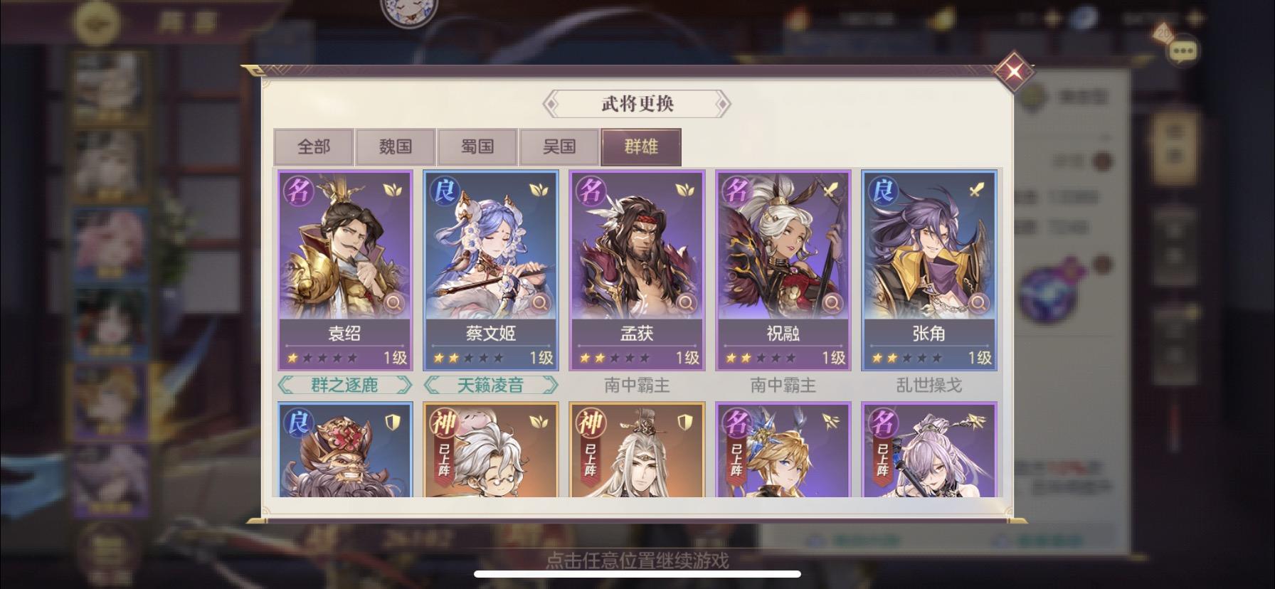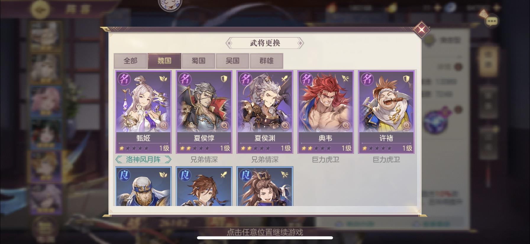 现在有一星的刘关张,和两星的左慈华佗,心愿单填个别的还是填现有的这几个,我现在上阵的小吕和春华,小张小关,华佗左慈,推图还凑合,有啥需要改进的吗。