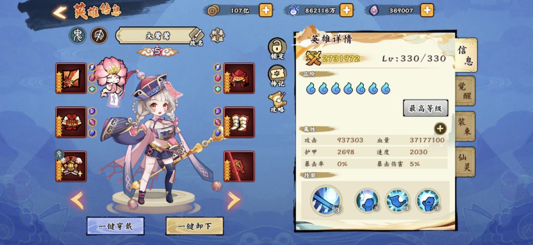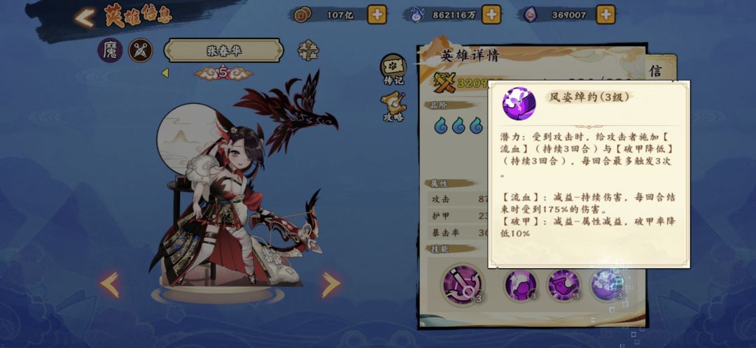 基础属性,87157的攻击,属于刺客的T0级别,仅次于后羿,1912的速度,完全达到了旧神的级别,所以春华绝对是目前版本最强的四系主c刺客,新手做好的入手英雄,老区囤资源的也可以做一做,副c效果也不错。