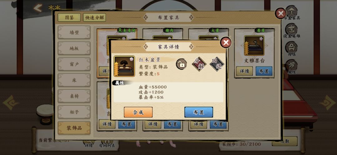 家具推荐4+2,(4明丽+丹枫2)红木饰品(加暴击率)