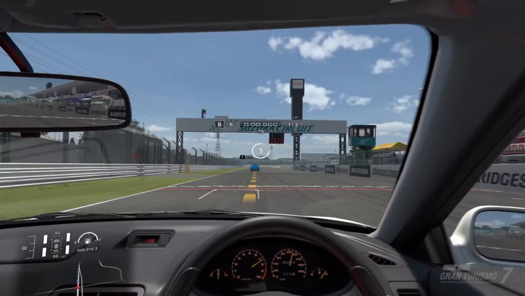 不能看到自己进入驾驶室的过程实在有些遗憾,在切换菜单时没有相应的动画和 VR 场景做衔接也同样让人失望。除了车灯外,车内中控台和按钮都不能交互,而就算车灯也会在光线较暗的情况下自动开关。不过《GT 赛车7》VR 版相较游戏本体上手难度更低,菜单虽然简陋但考虑到足够方便简洁的特点所以也能够忍受。在驾驶时,我从没真正关注过除路面以外的其他东西,所以在卓越的赛车体验之下,缺乏 VR 交互元素的问题只算是个小瑕疵。