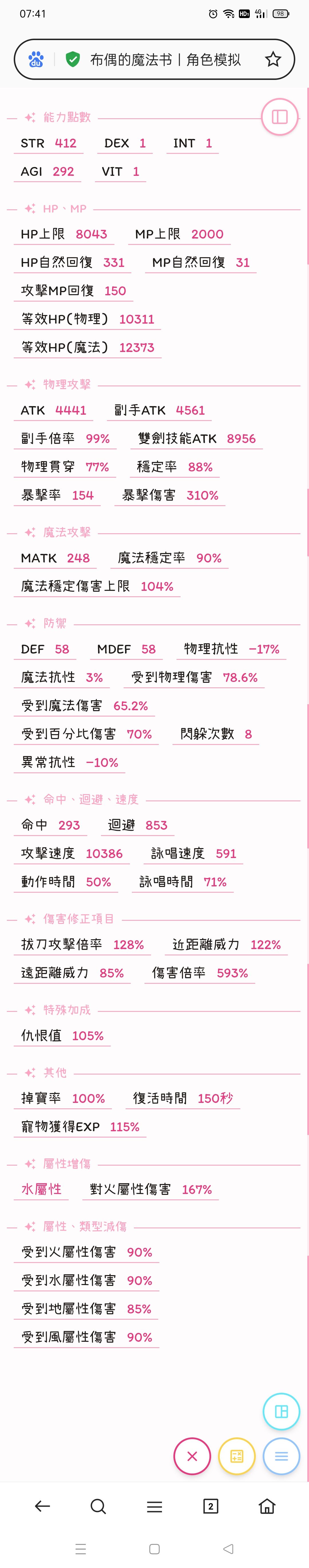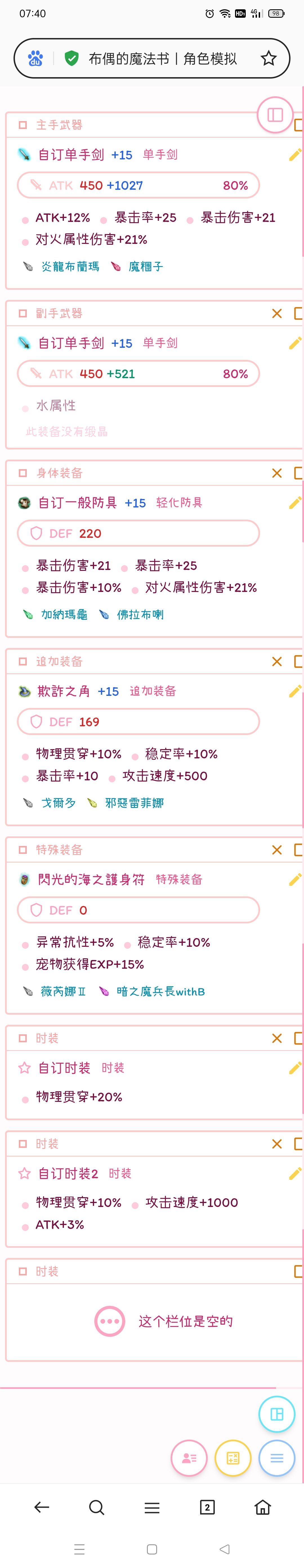 下图是我用欺诈然后无神勇破风狂战带宠物越战吃魔壶穿甲油自带20物贯时装后的万速主力副敏双剑,料理是根据我自己的料理吃的,下面的是模拟出来的捏(我就是想不用神勇试试看,别骂我,我是笨蛋)