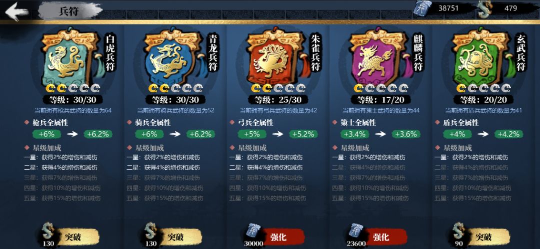 ●兵符养成功能,升级兵符可以提升对应兵种的能力,升级道具可在千年战史模式中获得