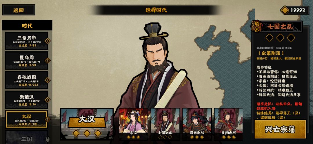 在剧本中,大家既可以选择成为大汉,分化诸侯,以削藩的方式来抑制诸侯。