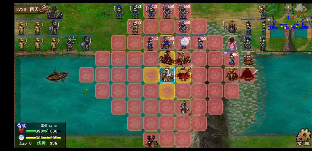 第二回合布好阵势如下。小夏突入敌后触发敌军全军出击。