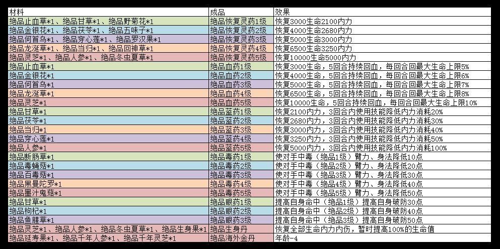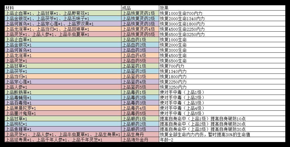 002.雪莲清灵散各等级效果