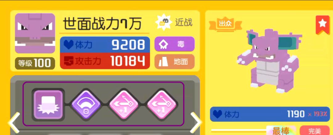 以下是能激发尼多王发招能覆盖 竞技场地图总面积六分之一到四分之一的面积的大毒招:污泥炸弹的技能石的摆布方案:展展石X1,多多石X2。(2023.3.1版本,经实测可行)