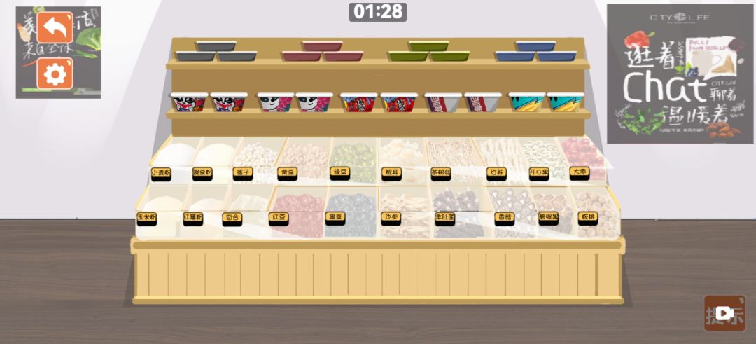 最后一个装干果面粉什么的要点一下框子,透明板抬起来才可以往里面倒,倒完再点一下把透明板放回去才可以开下一个