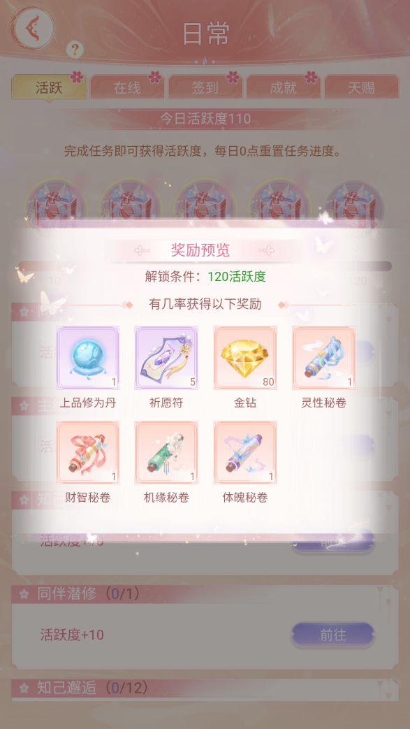 前6天每天存入10金钻,第7天签到观看广告后双倍领取=120金钻