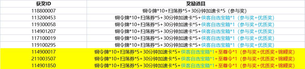 奖励将在今晚7点以前通过邮件发放给各位获奖的掌门,请注意查收