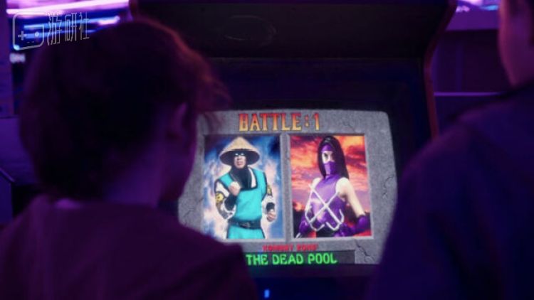 既然是游戏厅,那么剧中自然也会出现两位主角一起站在设备前玩游戏的镜头,从这个一闪而过的镜头上能看到,两位演员正在玩的是《真人快打2》的街机版游戏。