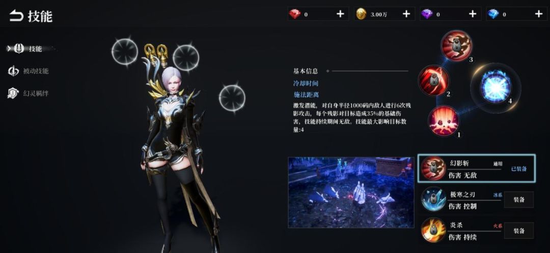 释放技能后,影舞者将会快速移动至敌人身侧发动致命一击,同时对命中的目标将造成三秒的定身效果。该技能感觉可以作为角色的起手技能使用,这样方便打出最大的伤害。