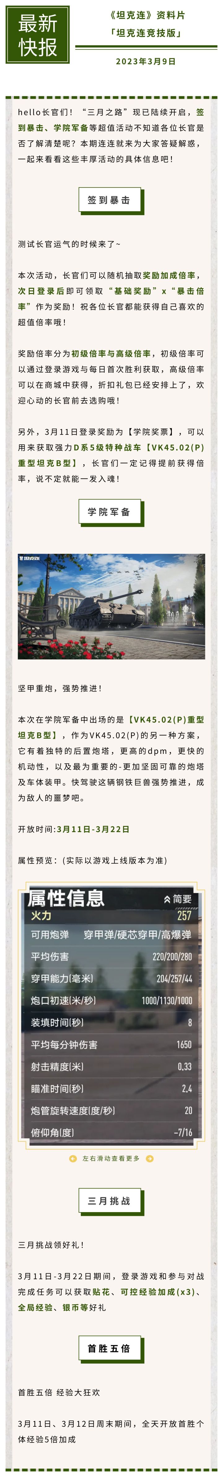 #坦克连#“三月之路”火热开启!签到奖励暴击、学院军备等超值活动不要错过哦!