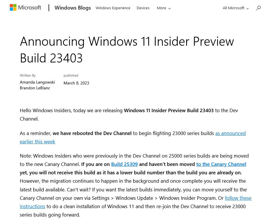 Windows 11 Insider 预览版本 Build 23403 更新的部分 Insider 测试参与者,并且仅当您使用
