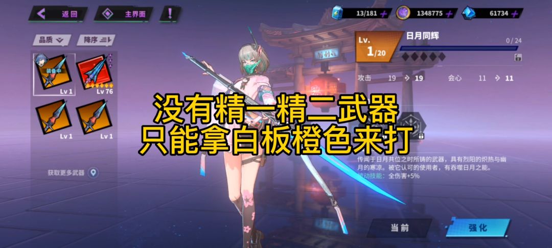 这里说一个需要注意的地方,我目前夏铃是3条绝技能量获取1%,所以带红色精三专武开启时停也很顺畅,如果你的夏铃绝技能量获取没有这么多,那么推荐你用橙2武器!橙2效果增加普攻获取的绝技能量+10%,经测试,对于蓄力普攻也有效果。