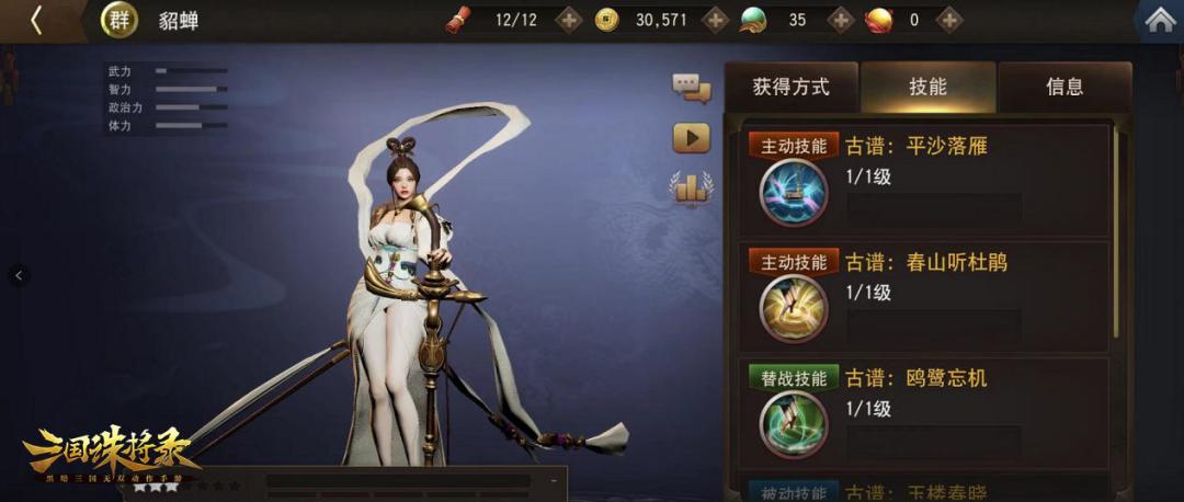 如果说手里的输出位已经足够,缺一个辅助类型的角色,貂蝉,将是不二之选。如果要用一个词语形容貂蝉,那就是“万金油”。春山听杜鹃的恢复、鸥鹭忘机的减伤、玉楼春晓的增伤和阳关三叠的减冷却,你能想到的增益BUFF,貂蝉都有!貂蝉也是最不用纠结阵容搭配的武将之一,因为总能有她完美契合的点~