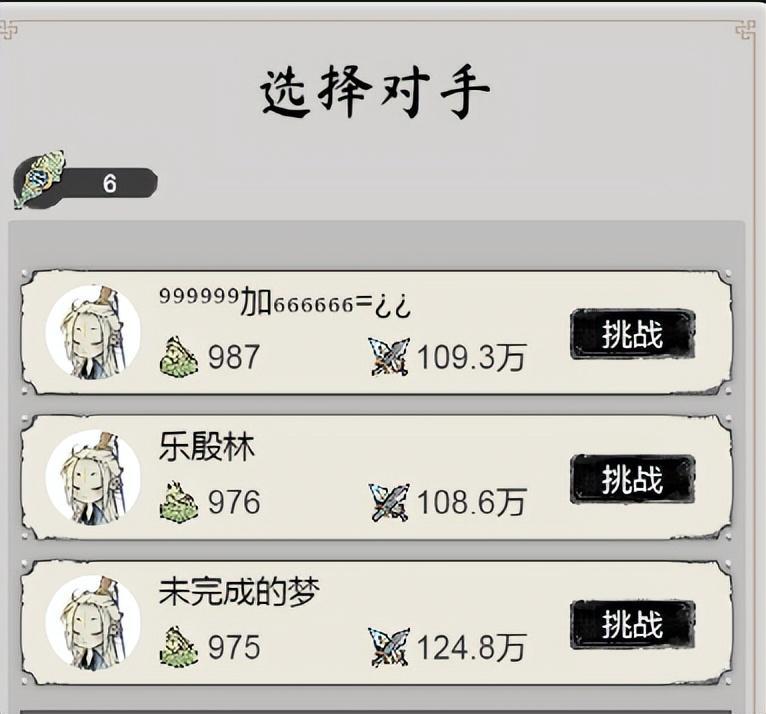 3、在挑战时我们可以从排行榜的三个对手中任意挑选一个来进行挑战