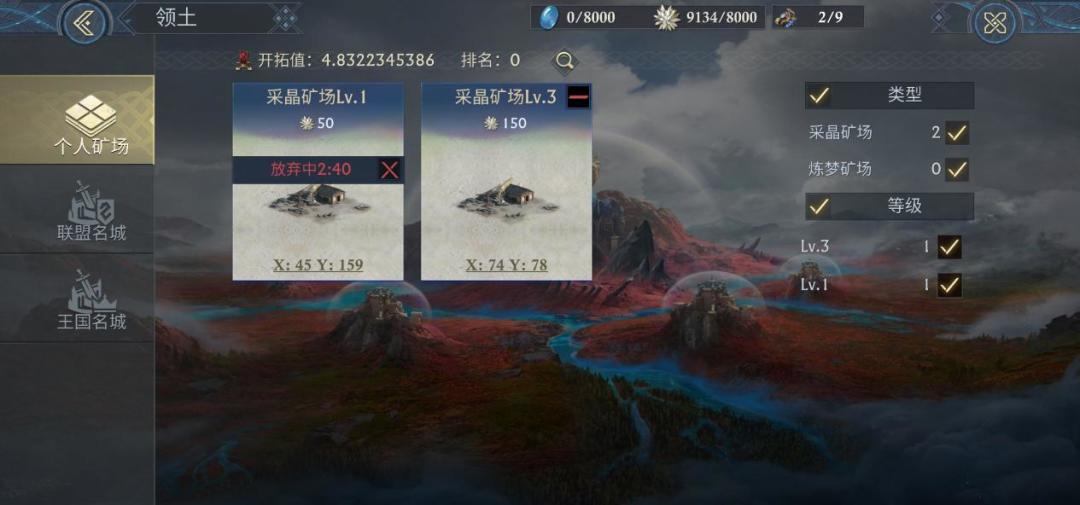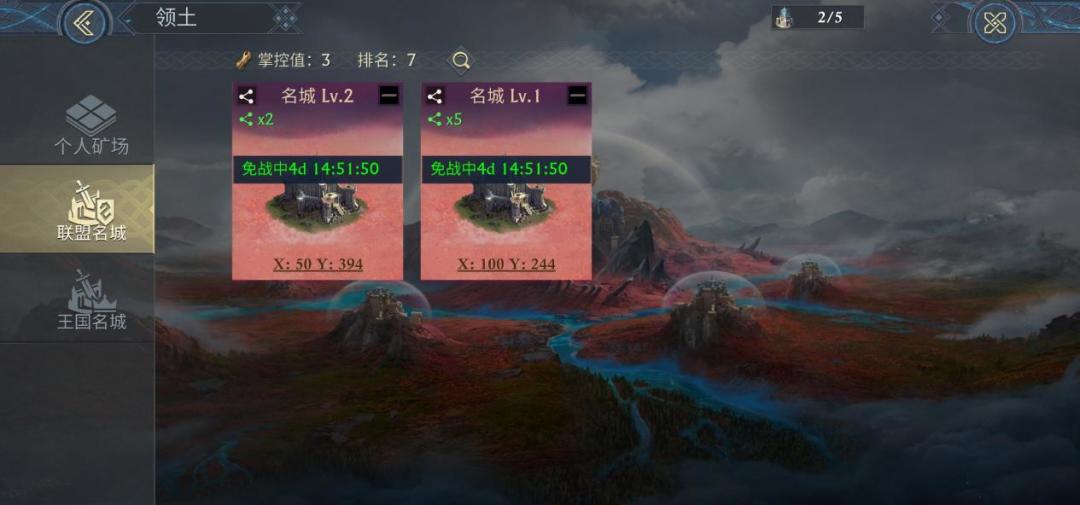 赛季地图中分布着几百座的名城,每占领一个名城都会给王国带来持续增益,同时占领的名城会给王国提供掌控值可作为王国在赛季中排名的衡量标志。