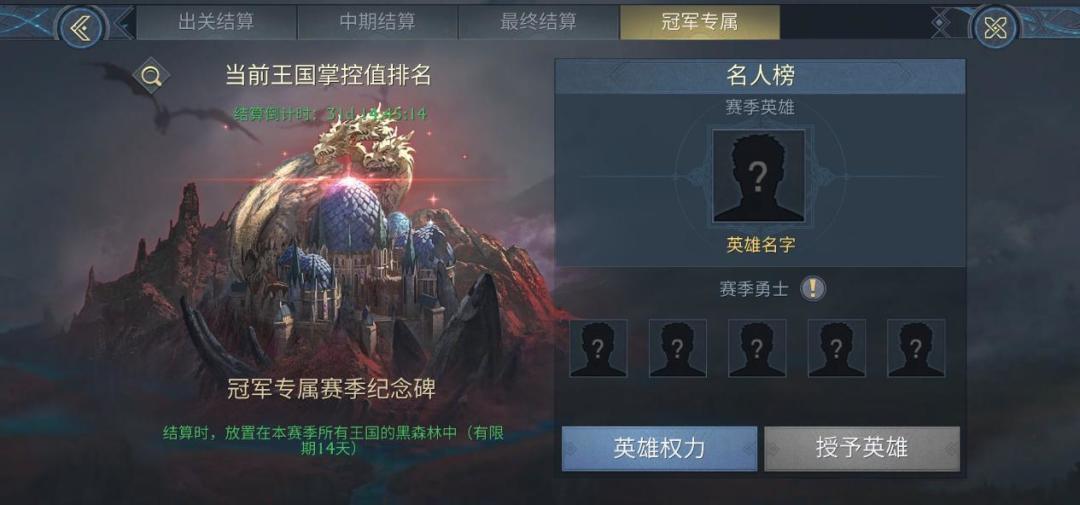 整个赛季可分为四个阶段的奖励,四个阶段分别是出关结算、中期结算、最终结算、冠军专属,其中最瞩目的是冠军专属奖励,为赛季英雄在黑森林中放置冠军专属纪念碑,而中期结算的奖励也不差,可获得赛季专属的强力限时神器,其余的奖励也一样引人注目,贵族勋章、龙晶石、兽肉、龙技能经验道具等超豪华奖励是其他活动所不能比的。