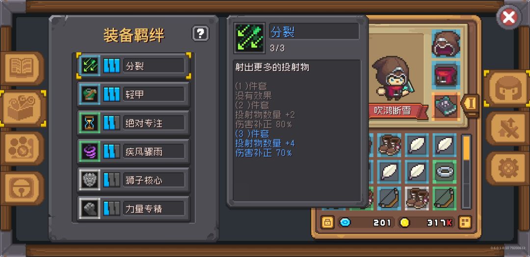 二,装备搭配,该玩法主要靠蓄力攻击,所以搭配装备以分裂,绝对专注,锁定目标最好。