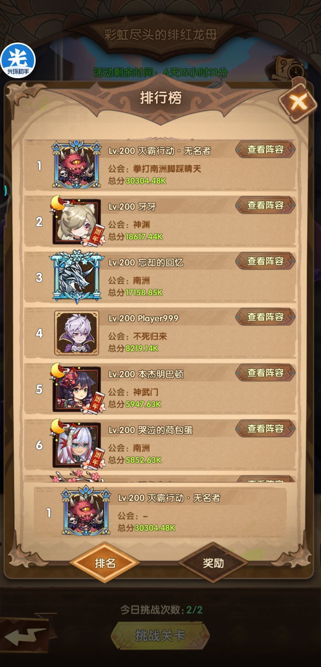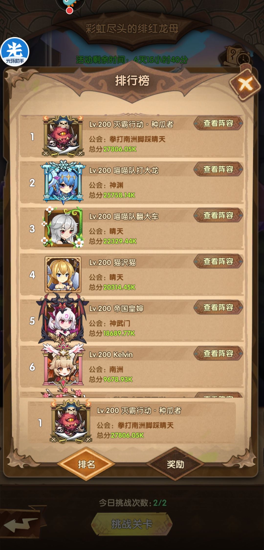 无妨,没了烛龙,却是放出了彩虹龙,同样是肝帝们消遣时间的好活动,也是一少霸榜的好机会,如图: