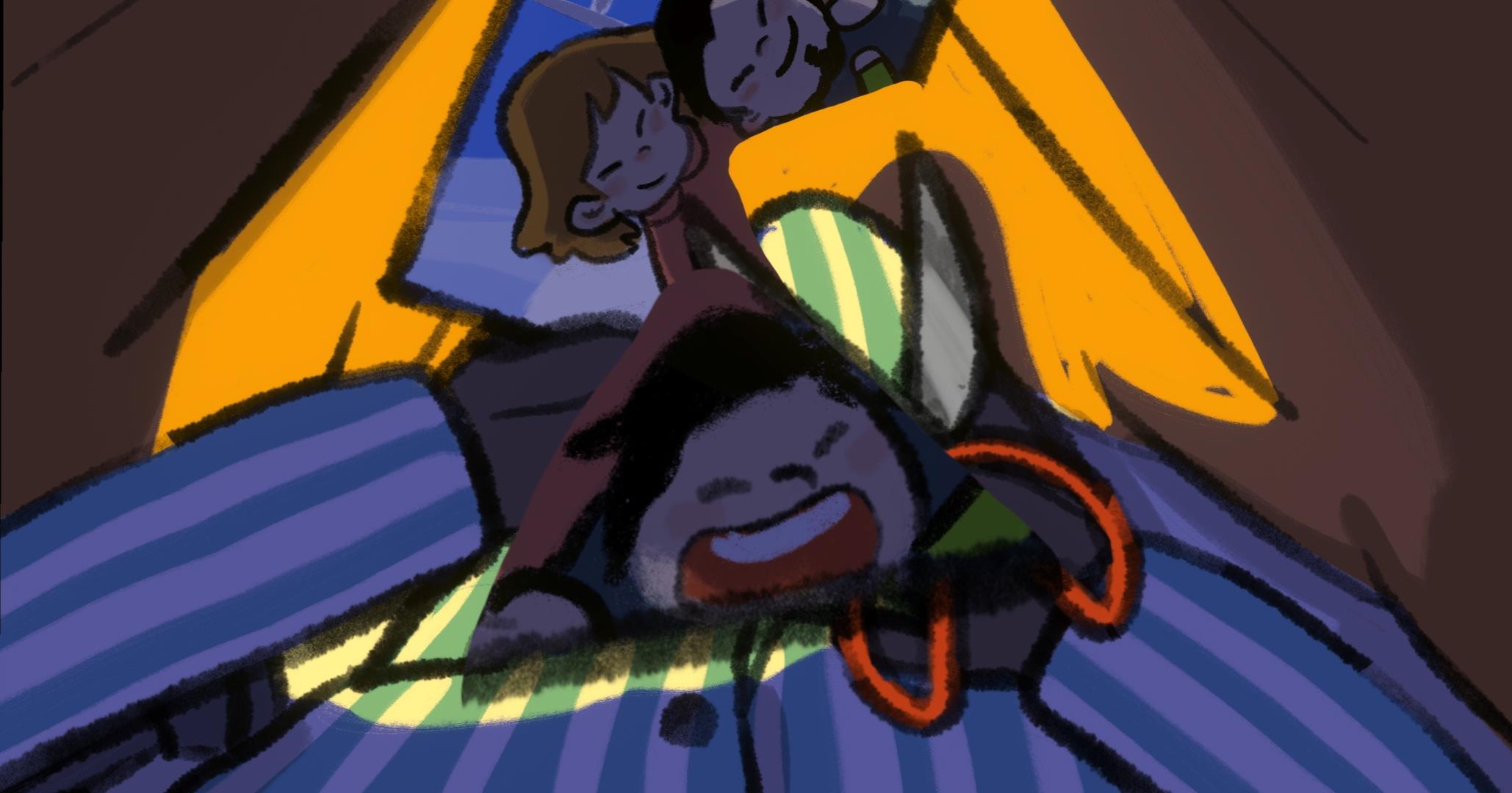 这里个人觉得,如果仅仅是父母之间的争吵,应该被剪掉的不是自己(除非是想逃离这样的环境),小男孩穿的睡衣很像病号服,很难不联想🤔