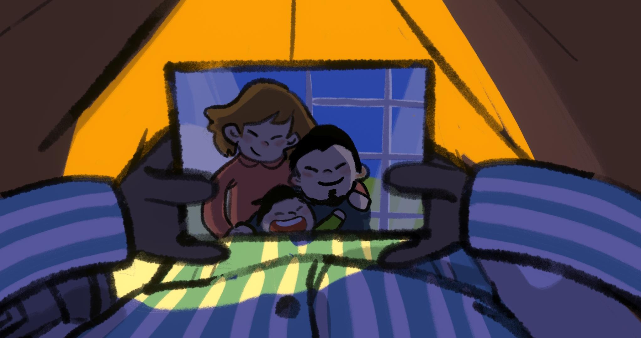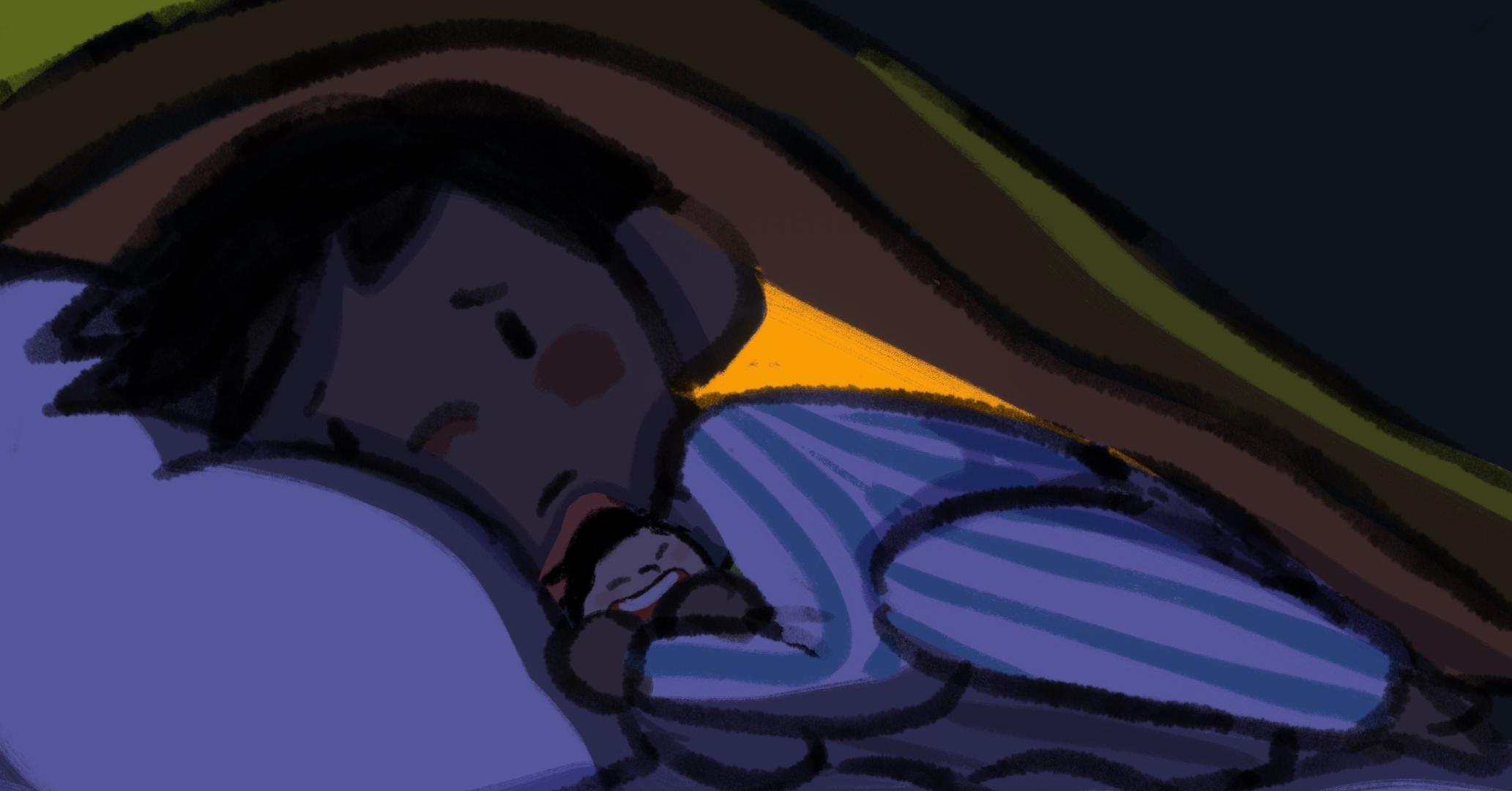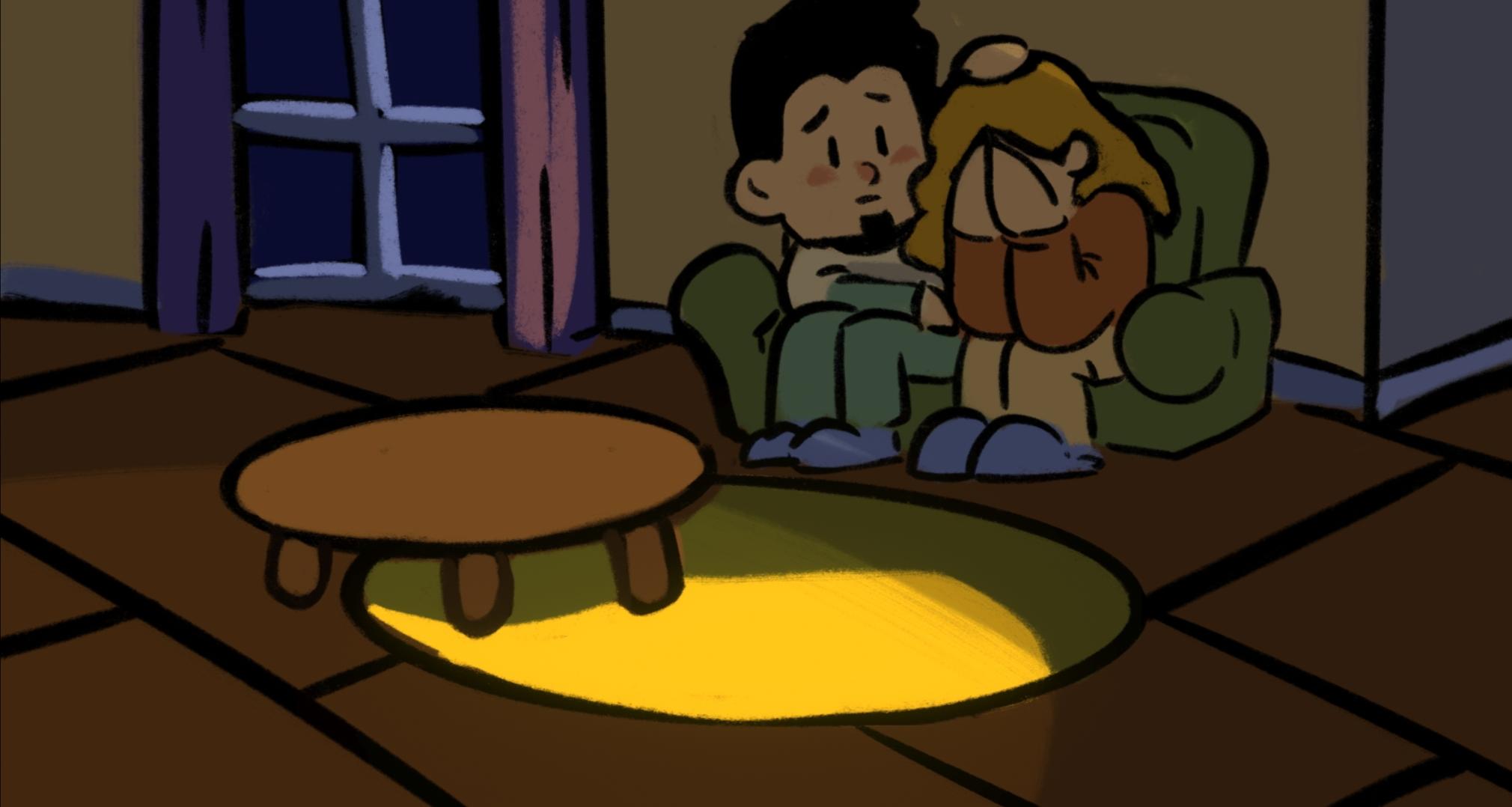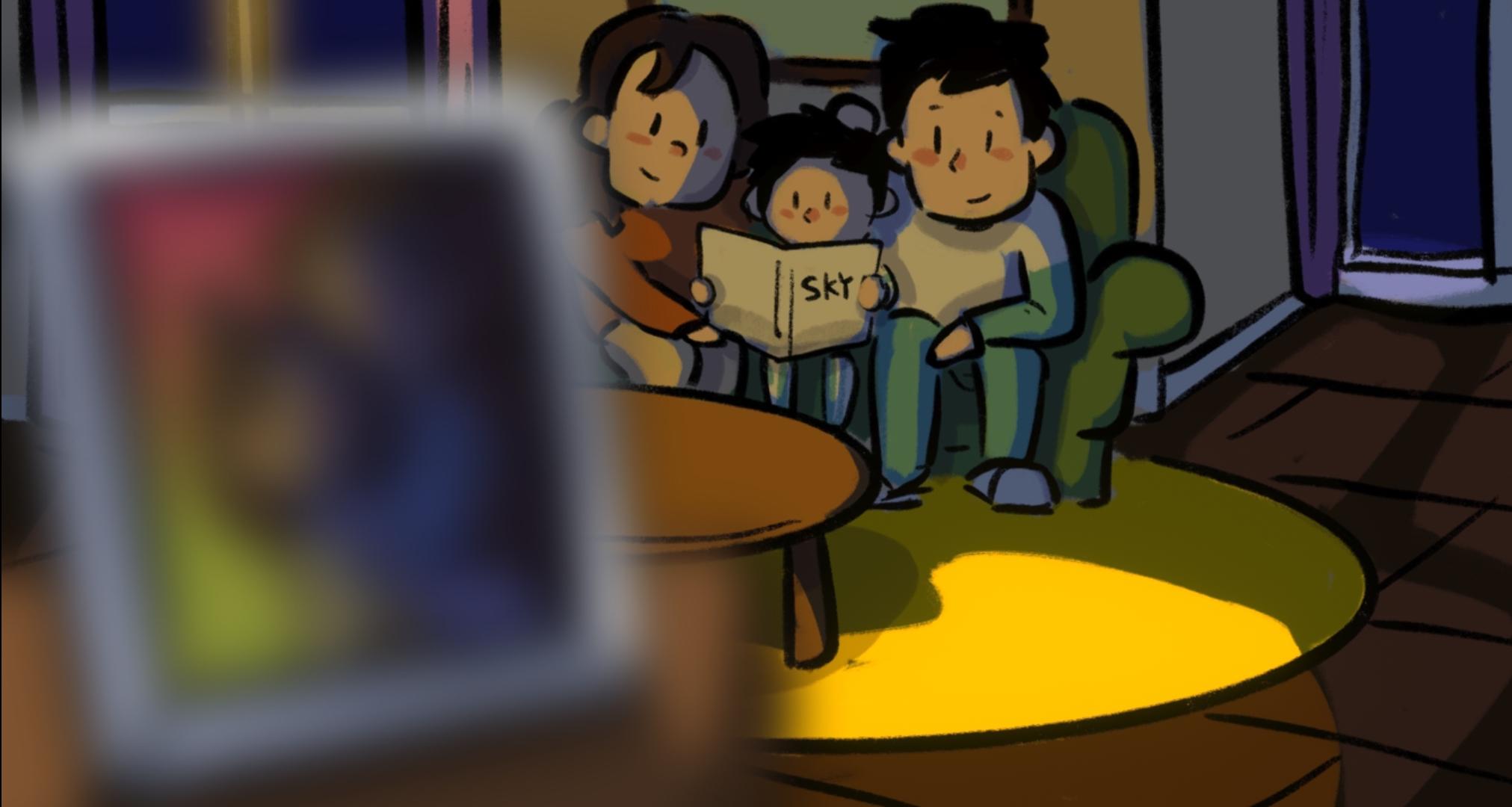 游戏一开始出现的红色对话框应该是父母争吵的内容,作为主人公的小男孩显然是被吓到了,躲在被窝里哭(好真实的场景)