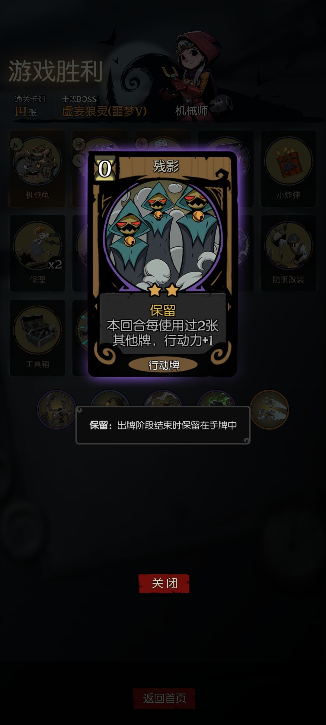 核心行动牌卡牌:残影,(工具箱),0费的修理