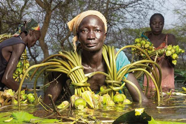 ——睡莲球茎被磨碎并制成可食用的糊状物。除了鱼,它是村民唯一的食物来源。