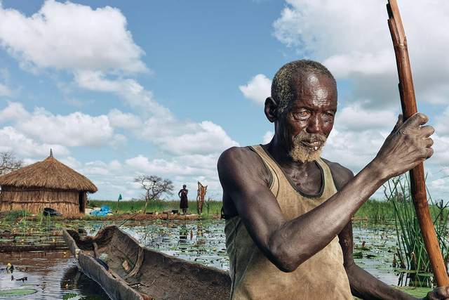 南苏丹的村庄一般建在一侧靠近河流或湖泊,另一侧是土路的地方。现在,有些村庄已经变成了水世界,人们可以乘独木舟拜访邻居和亲戚。数十艘独木舟每天在村庄之间进行四小时的航行以运送货物。