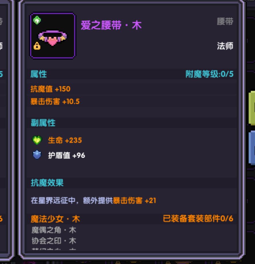 还缺少抗魔值则可以选择先升级左下右下两个位置(主属性为元素穿透)的外装