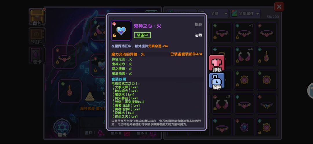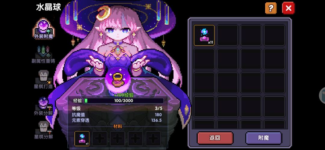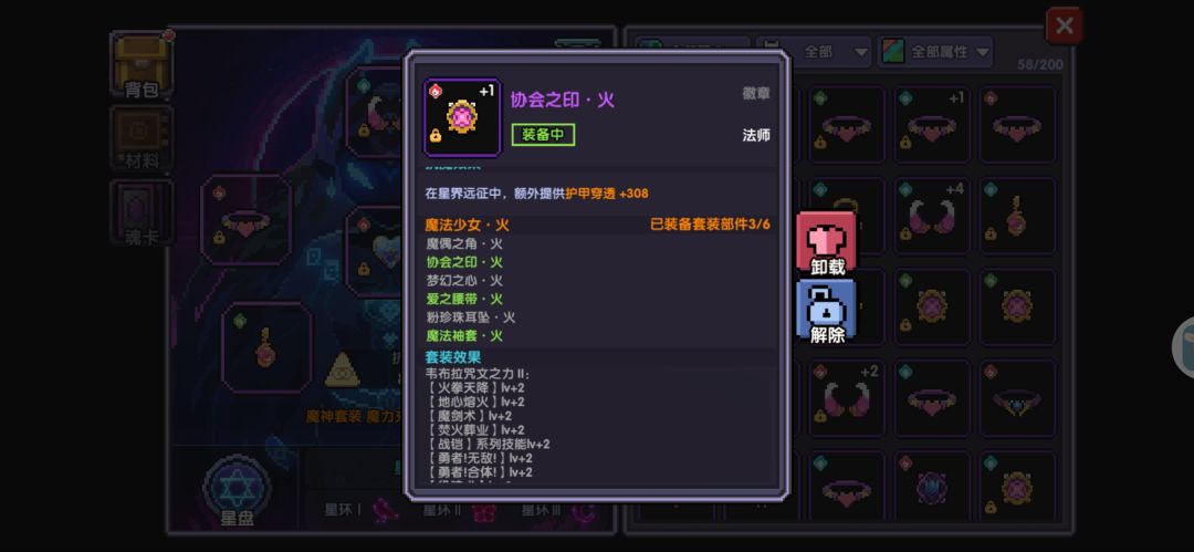 共6个位置,含0-2条副属性,成套后,对应职业&属性下,所有魔女技能提升2级