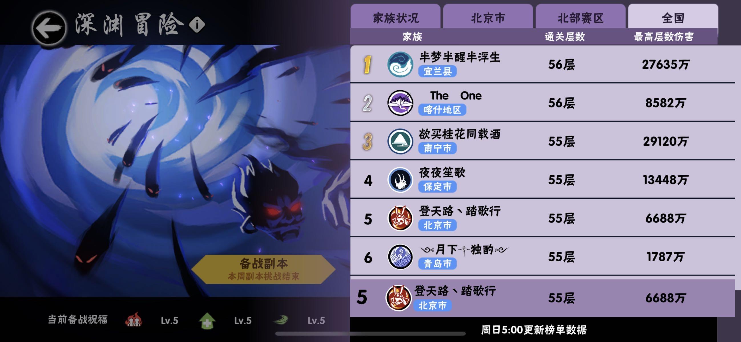 3、族战团本:团本奖励只取前30,团一、团二均达到合格以上算作参加。