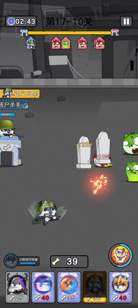 17-10作为游戏的最后一关,难度之高自不必说。尤其是开头的自爆僵尸,基本需要30以上骨头的强力狗子与其1换1才能解决,再加上下载游戏仅仅7天,手中狗头并不强力,战力也是勉勉强强接近推荐战力,通关十分困难。于是经过多次失败总结及分析数据,得到经验如下: