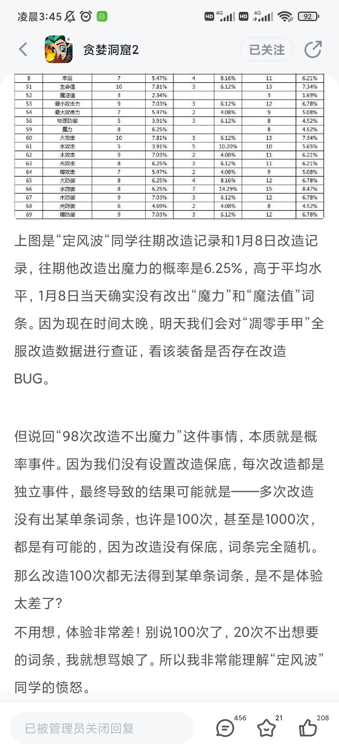 到群里问了一下洞友,听说是退坑了,相信他退坑时一定很愤怒吧!90多次的改造,一定充了不少钱相信这也不只是上头,也有对这个游戏的热爱。而官方为此做出了啥呢?仅仅是嘴上的感同身受和一个选择是否保留之前的属性,我觉得他并没有真正为玩家去着想。损失这样一个玩家,你们不觉得很可惜吗?