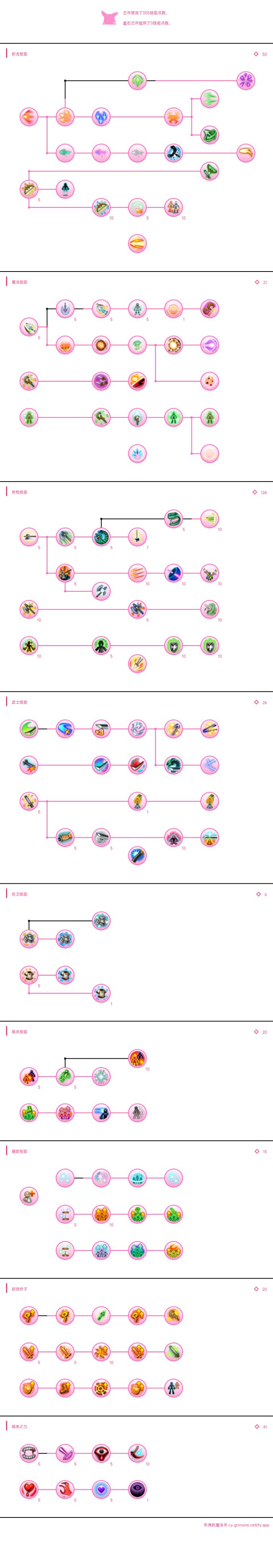 一共消耗305技能点,无星石,可以根据自己星石搭配,利用剩下技能点点出其他辅助性的技能:暗影步,后跳背刺,无悔等等