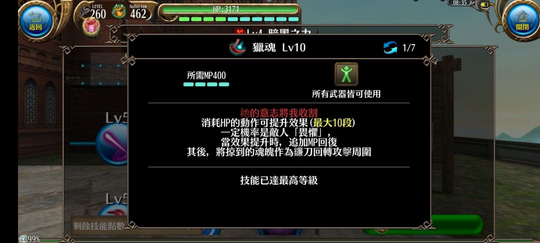猎魂:倍率1500%,噩梦层数越高倍率越高且是魔法惯性,是枪的回蓝手段之一,但动作太慢不作为主输出