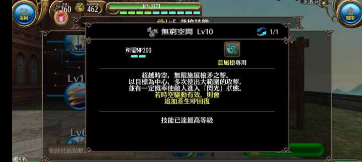 无尽空间:分五段伤害倍率400*5次,在有时空驱动的buff时每段回复总攻回的MP,同时给敌人挂上闪光buff,是枪的主要回蓝手段。