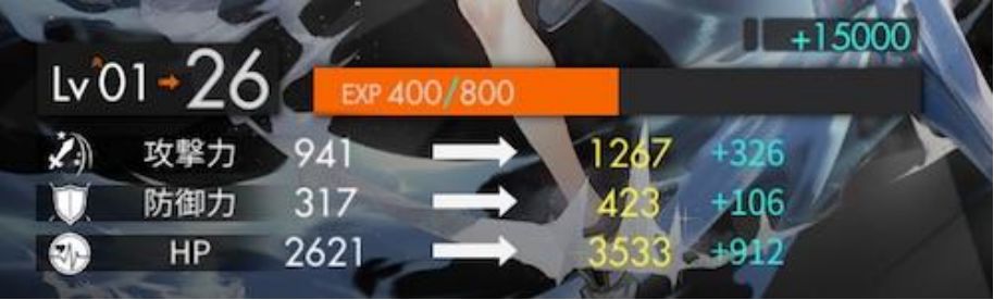 提升等级可以强化光灵的面板:攻击力・防御力・HP数值。