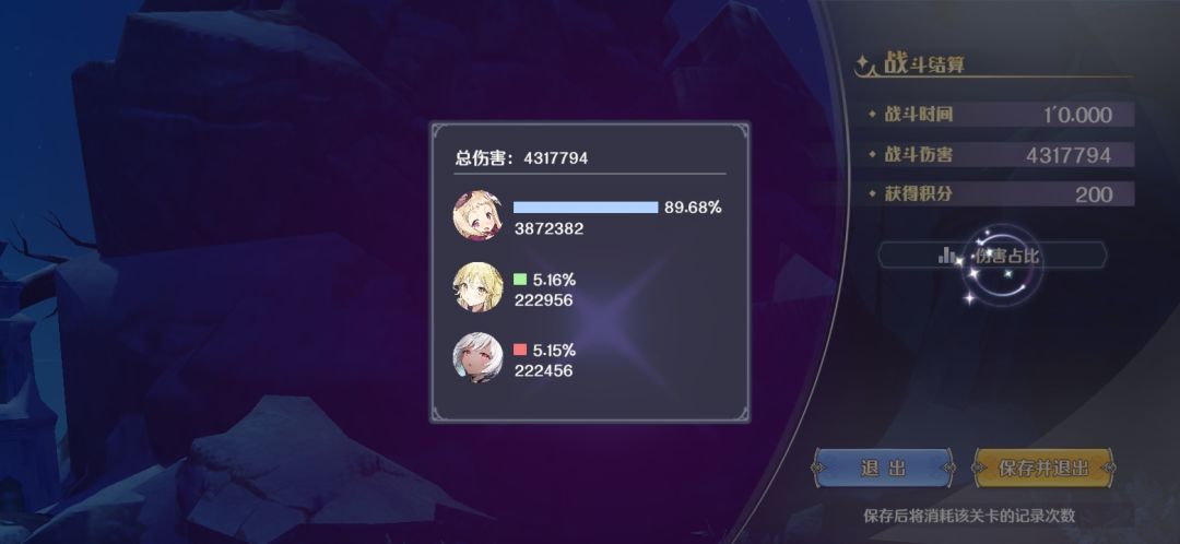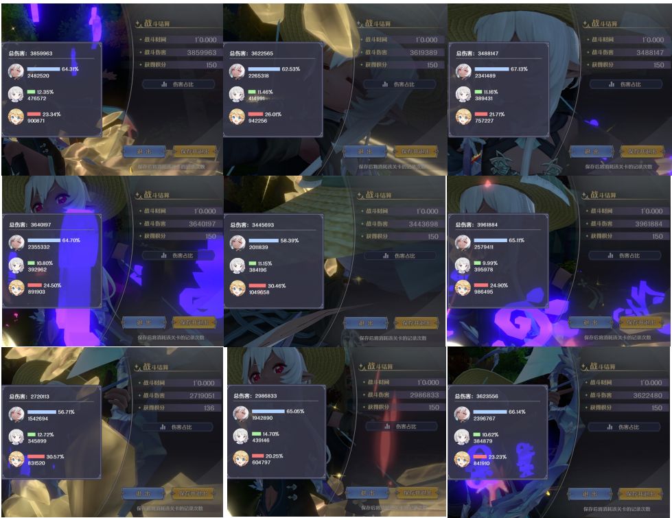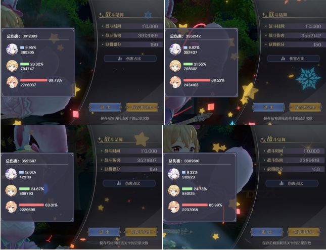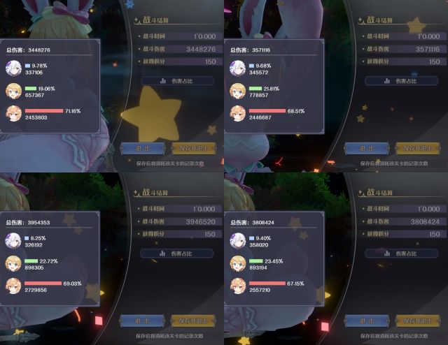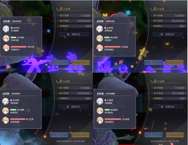 1.队里的多洛提亚,风龙米埃尔,土弓法露露,在其他未列入本文的测试中,主控的时候,且搭配合适的队友,都能够打出高额伤害,但把她们都放到一个队伍里,主控多洛提亚时,同一场能够打出超高伤害的,只有主控的多洛提亚,并不是百花齐放,都能打出高额伤害。这也从一个角度印证了本文第三章输出角色真的越多越好吗?如何看待辅助角色?总结出来的结论——与其花费很多精力纠结三人小队中单一角色的最高输出问题,纠结一个三人小队由三个手控输出角色组成,却有两个角色打不出本应手控打出的足额高伤害的问题,不如多考虑考虑辅助角色的价值。