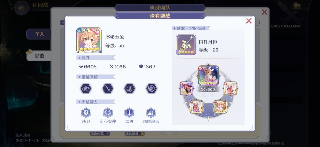 只要掌握了水剑的连携打法,只要水剑有一定强度且前30秒能补满玛娜,避开最后5秒左右BOSS旋转镰刀的无敌帧,哪怕其他两个队友配置很低,凭借两次超长蓄力普攻打出的巨额伤害,社团战同样可以轻轻松松地低配置打满分。