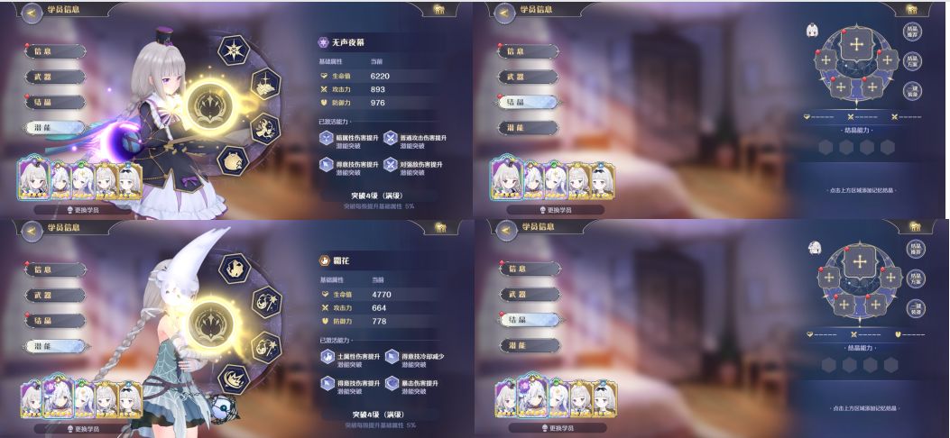 水剑与土弓这两组对比的共同点是光法相同,土弓与水剑都为本体0破,结晶搭配都激活了所有效果,水剑组采用的暗牧与土牧与土弓组相同。不同点是土弓的武器等级是5星20级,水剑等级略低;土弓的主结晶是2次突破70级,水剑的主结晶是0次突破50级;土弓组的参数略高于水剑组。