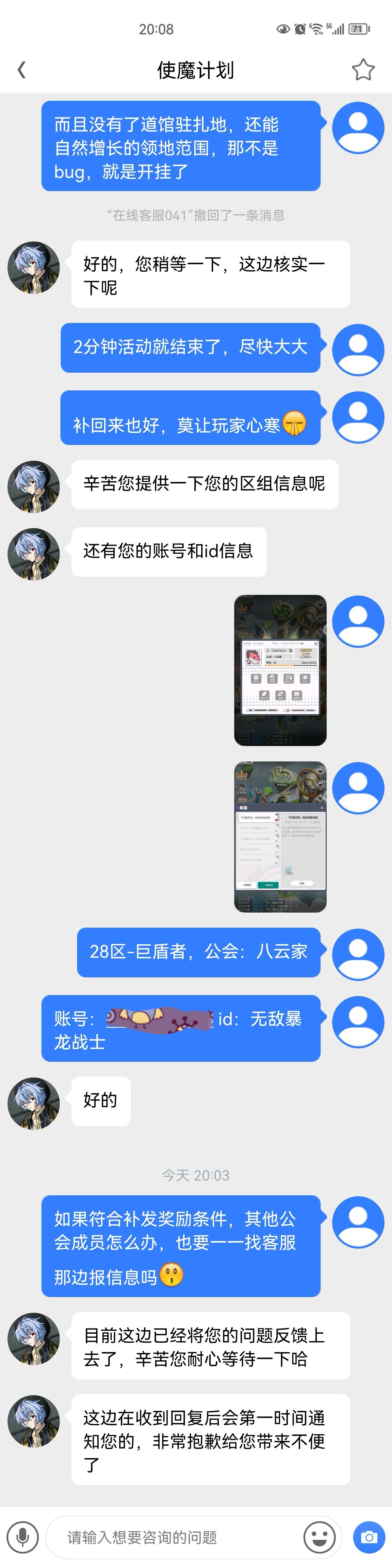 也因此次bug事件,导致我公会战力受损,部分微氪中氪玩家弃坑、部分退出公会。