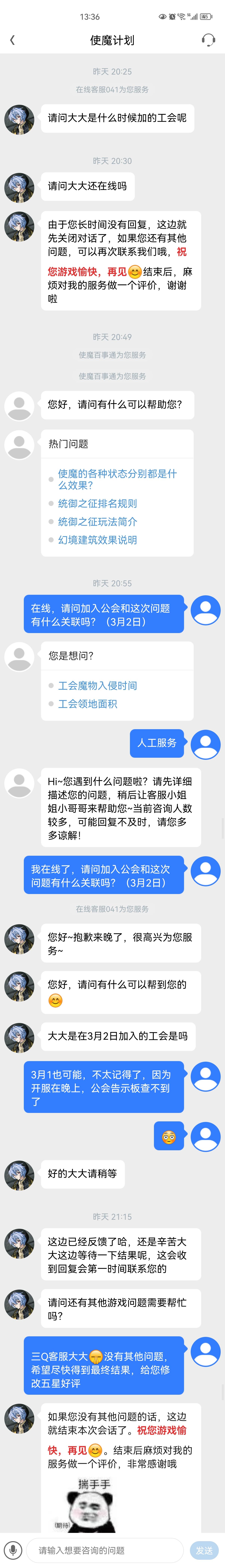 (二)、公会成员向各位客服大大反映情况,官方均未及时修复存在bug,因此让我觉得有可能以下几种情况存在:一、客服敷衍了事没有上报,官方并不知情bug。