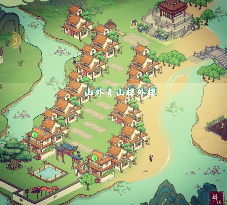 古色古香的建筑,依山傍水而建。