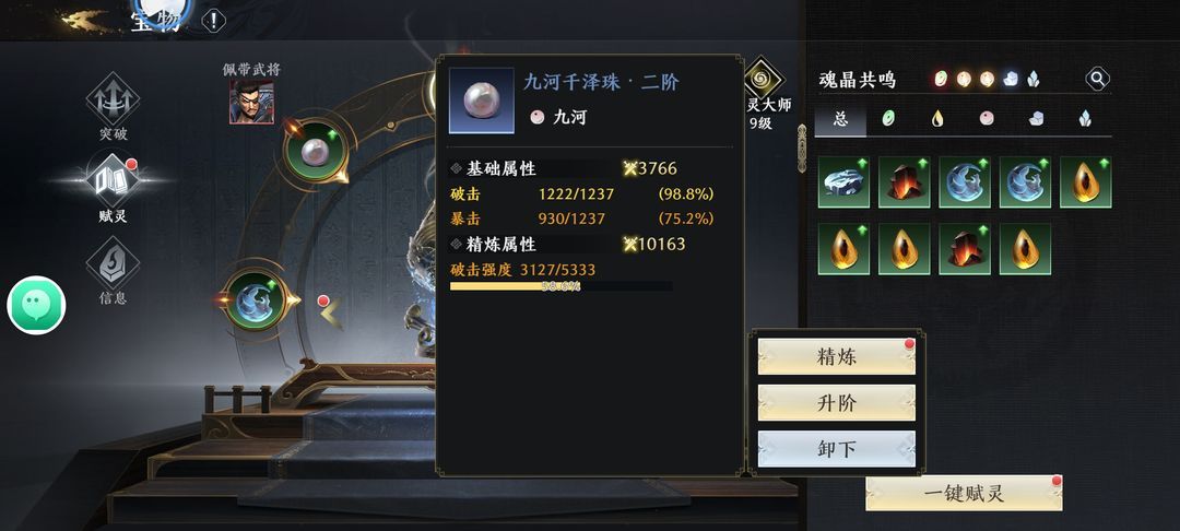 魂晶升阶:随机生出新一条属性,基础属性值上限也会随之提高。