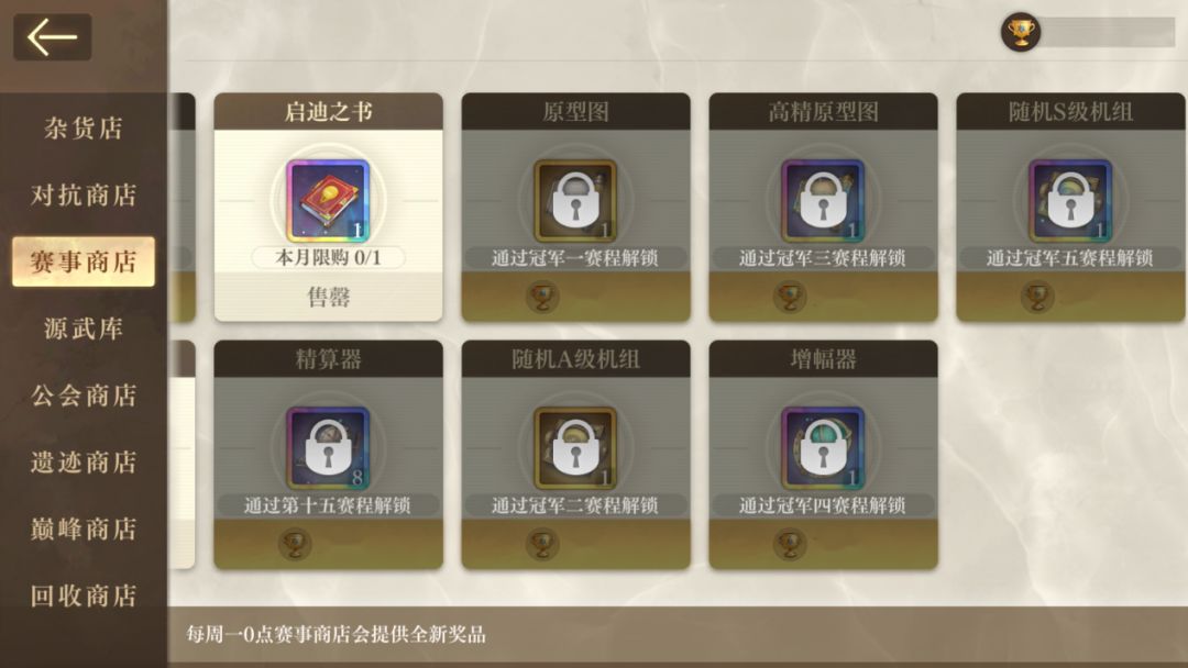 获取方式:赛事商城兑换、回收商店兑换、寻秘远征本周奖励、流动商店处购买