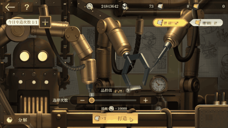 开拓者还在每日专造处选择想要的原型机,在打造获得S级原型机时,有50%概率获得所选择的定向原型机。