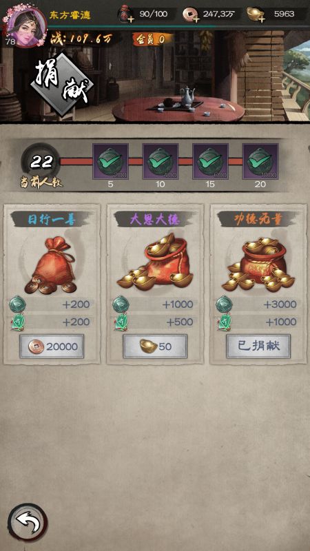 19.练功房:功勋、功法碎片、铜钱、朱果、经脉丹。